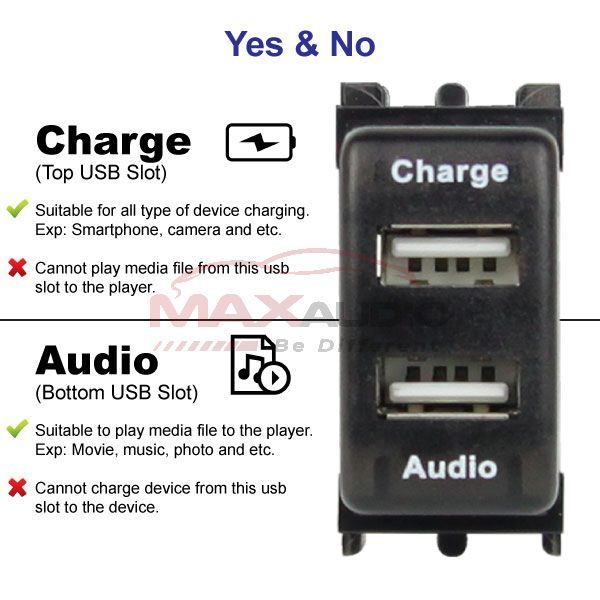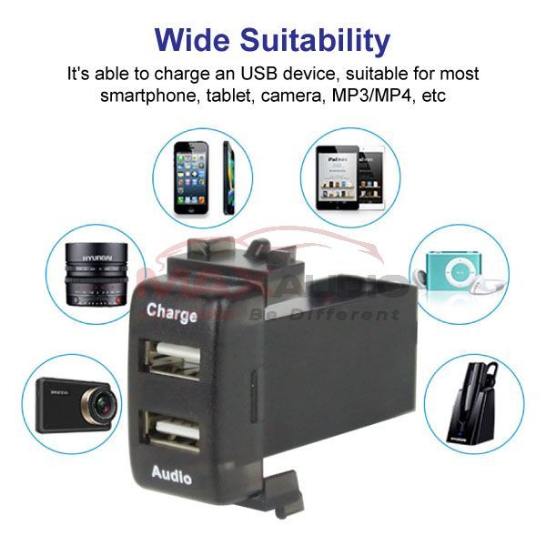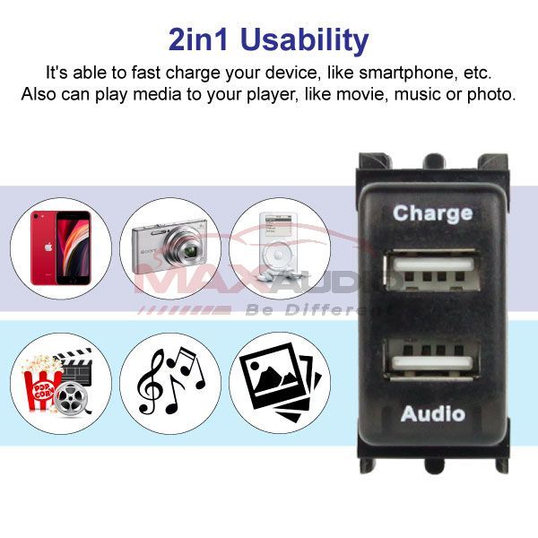 Introduce DUAL USB FAST CHARGING WITH AUDIO PORT INTERFACE! This USB interface extent 1 USB port to 2 USB port, so you can enjoy your audio media along with charging your device.