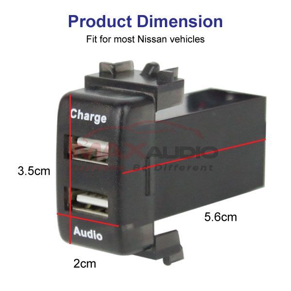 For Most Nissan Dual 12V USB Fast Charging With Audio Video Music Media Socket Slot Port Interface Extension