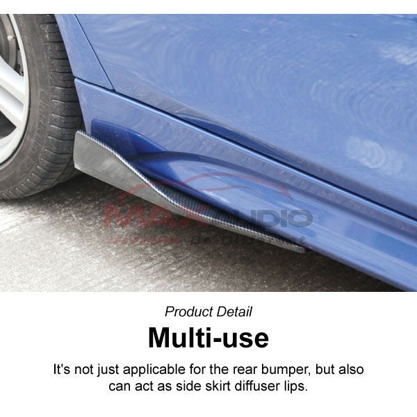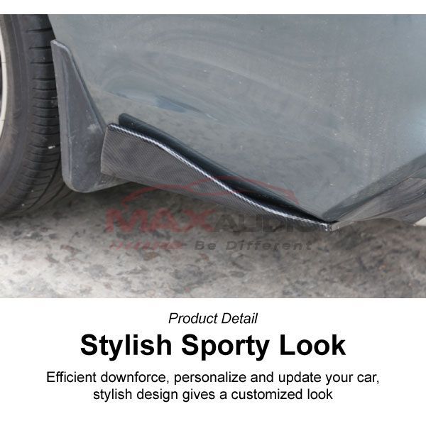 This diffuser features the gloss black finish with PP ABS plastic, durable yet stylish, also its universal fit for most sedan and hatchback cars. This kit includes (2) side skirt diffusers for the left and right sides, as well as a set of screws to easily bolt-on install them on your ride With these universal side skirt diffusers, your sporty tuner or custom car will complete its sporty aesthetic transformation and gain an aggressive touch!