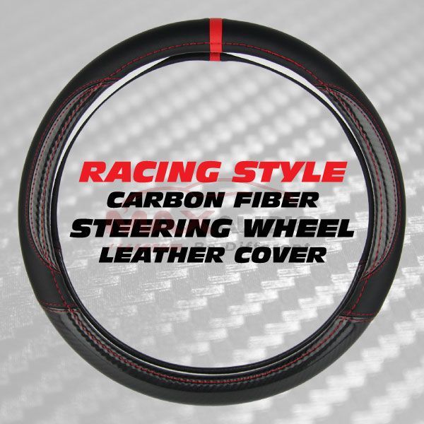 Car Carbon Fiber Black Red Steering Wheel Cover Auto Anti-Slip Leather Interior Accessories Decorate 38cm Inner Diameter Universal